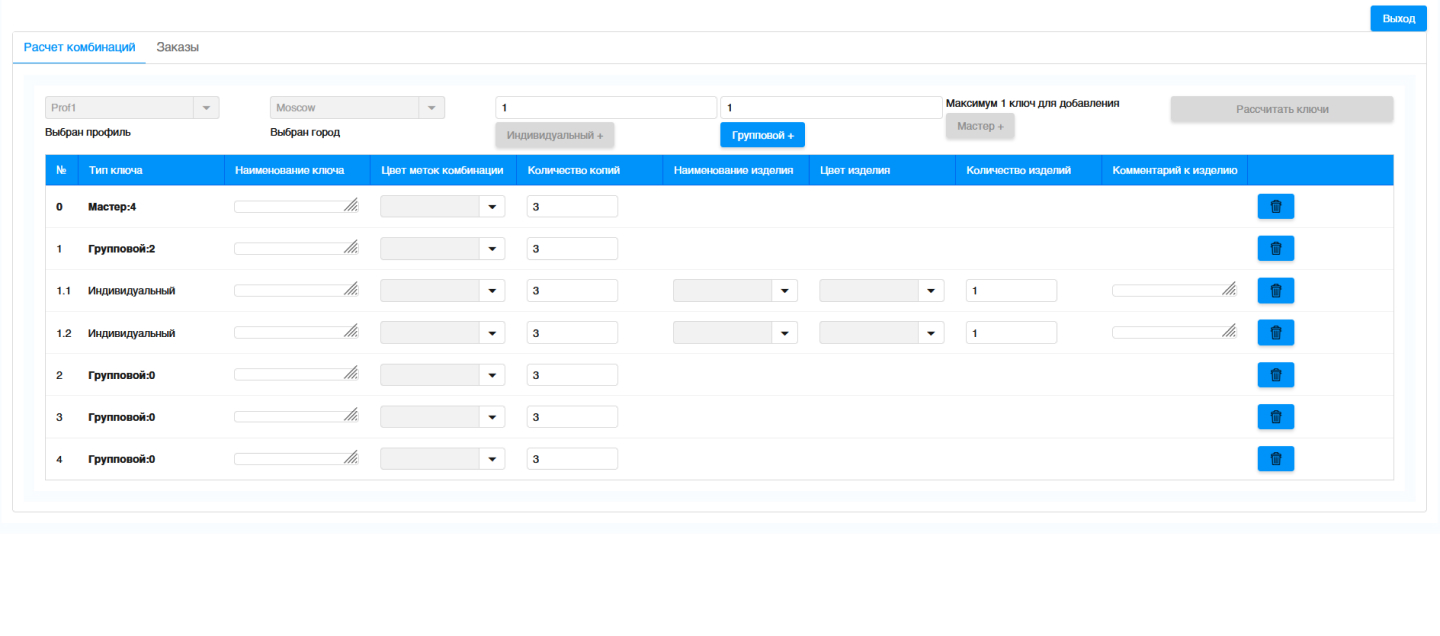Система автоматизации расчета ключей