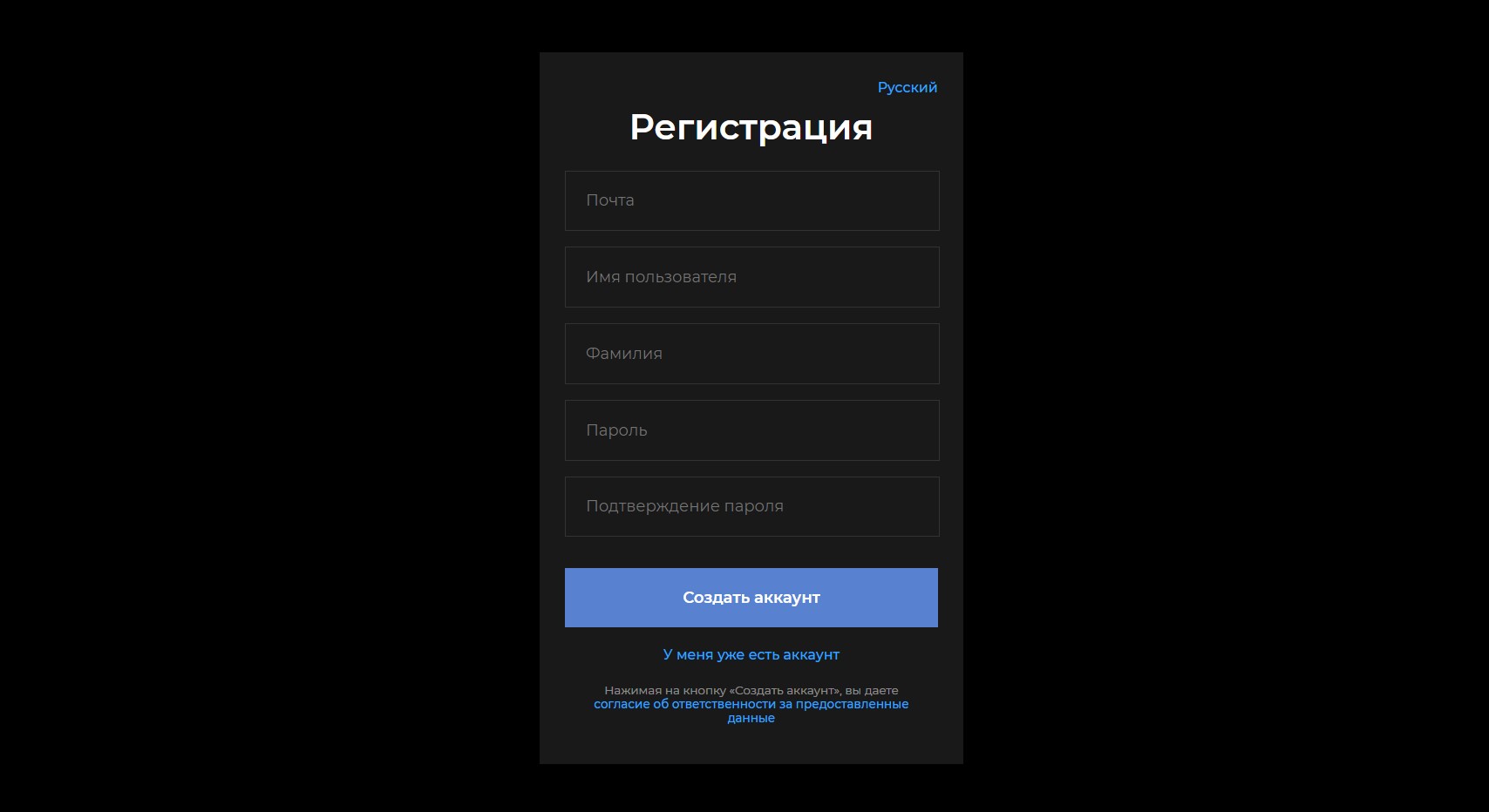 Окно регистрации