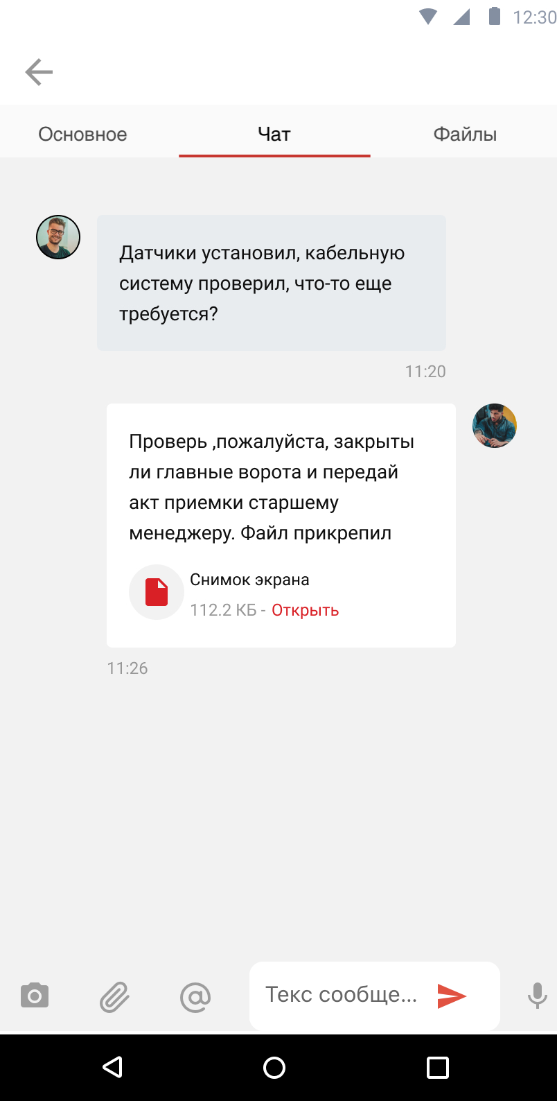- создание чата по конкретной заявке, где вместе с отправкой текстового письма есть возможность отправить файл, фото и голосовое сообщение