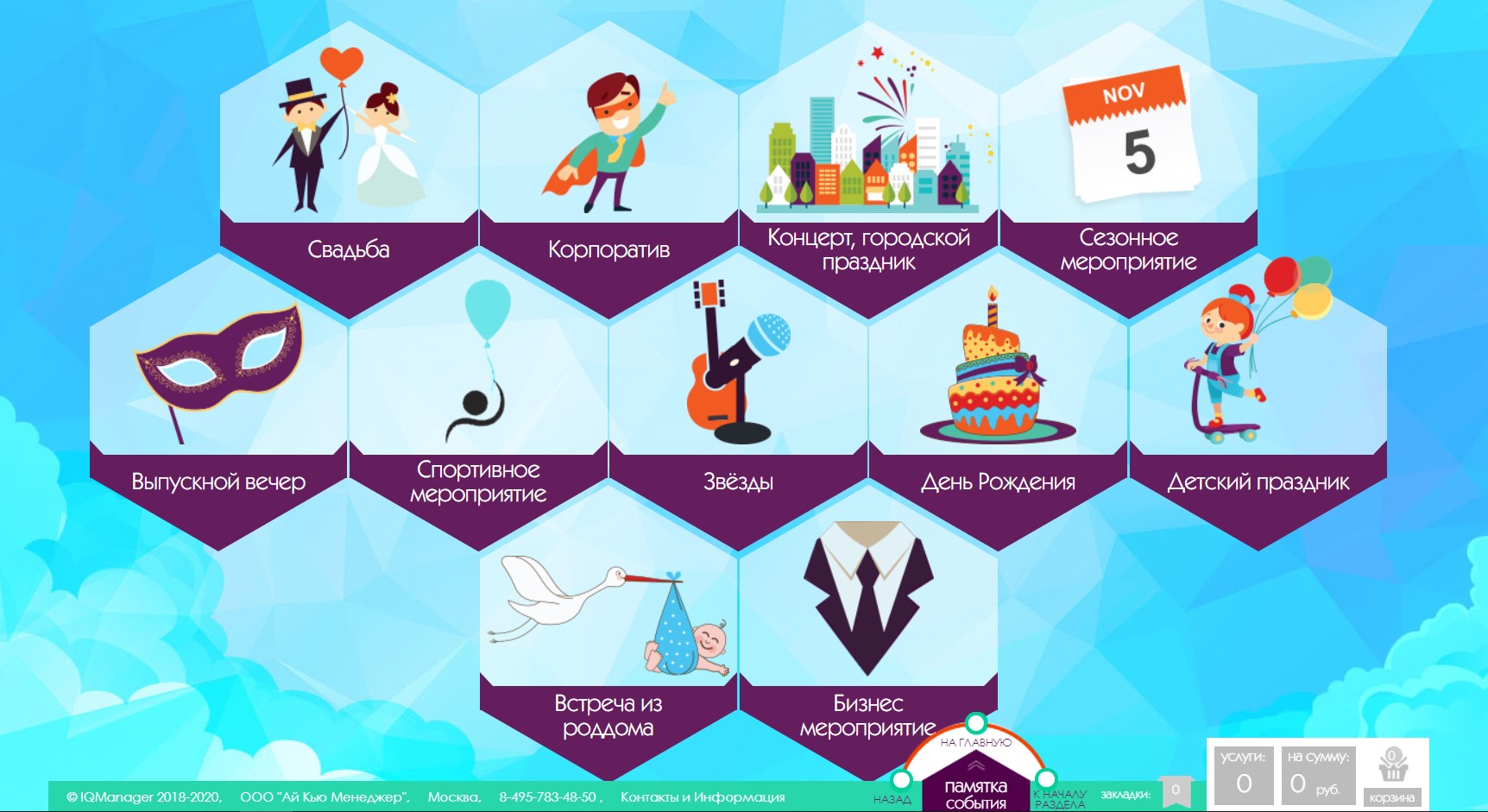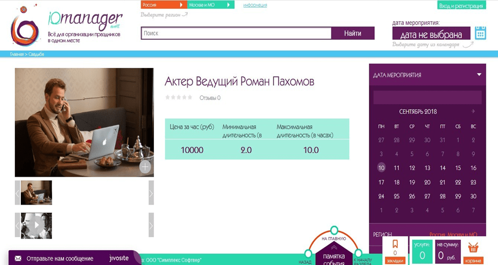 Удобно собрать желаемые виды развлечений в корзину и увидеть полную сумму за мероприятие. Исполнители могут добавлять фото и видео, заполнить характеристики, так же выбрать регион и указать возможность доставки.