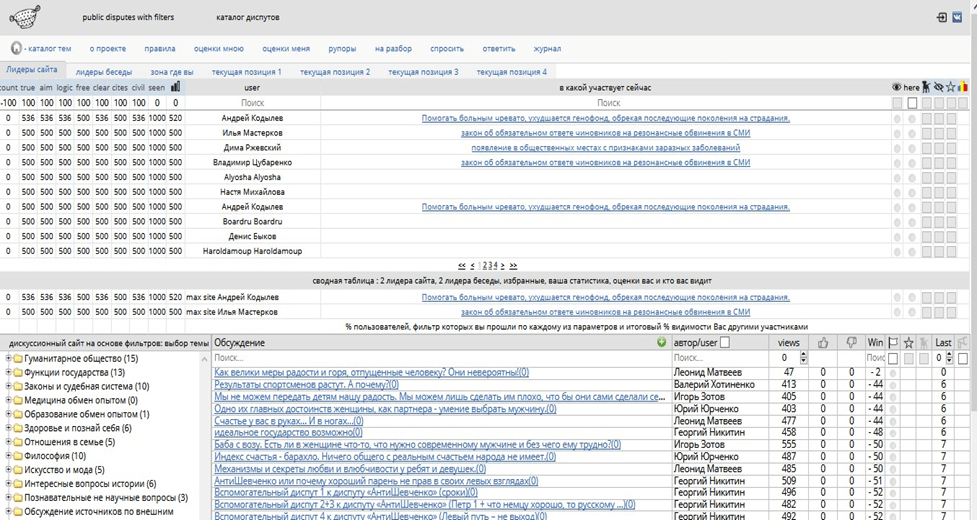 Цитаты с сайта наиболее хорошо описывают этот проект: «Это некоммерческий проект, созданный на средства и усилиями группы частных лиц - попытка дать гражданам высокотехнологичный инструмент для формирования отношения к разным вопросам жизни общества и личности и коллективного поиска их решений.», «Площадка, претендуя на честность диспутов, не подразумевает вмешательства администратора или модератора, управляется исключительно открытым программным кодом, хранит журналы всех событий доступными для пользователей.