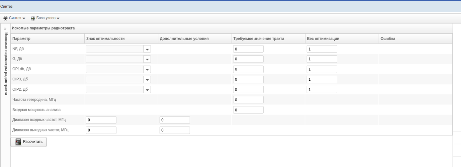 Система позволяет на основе балы элементов (скриншот2) подобрать список подходящих радиочастотных трактов