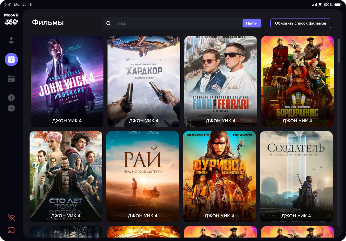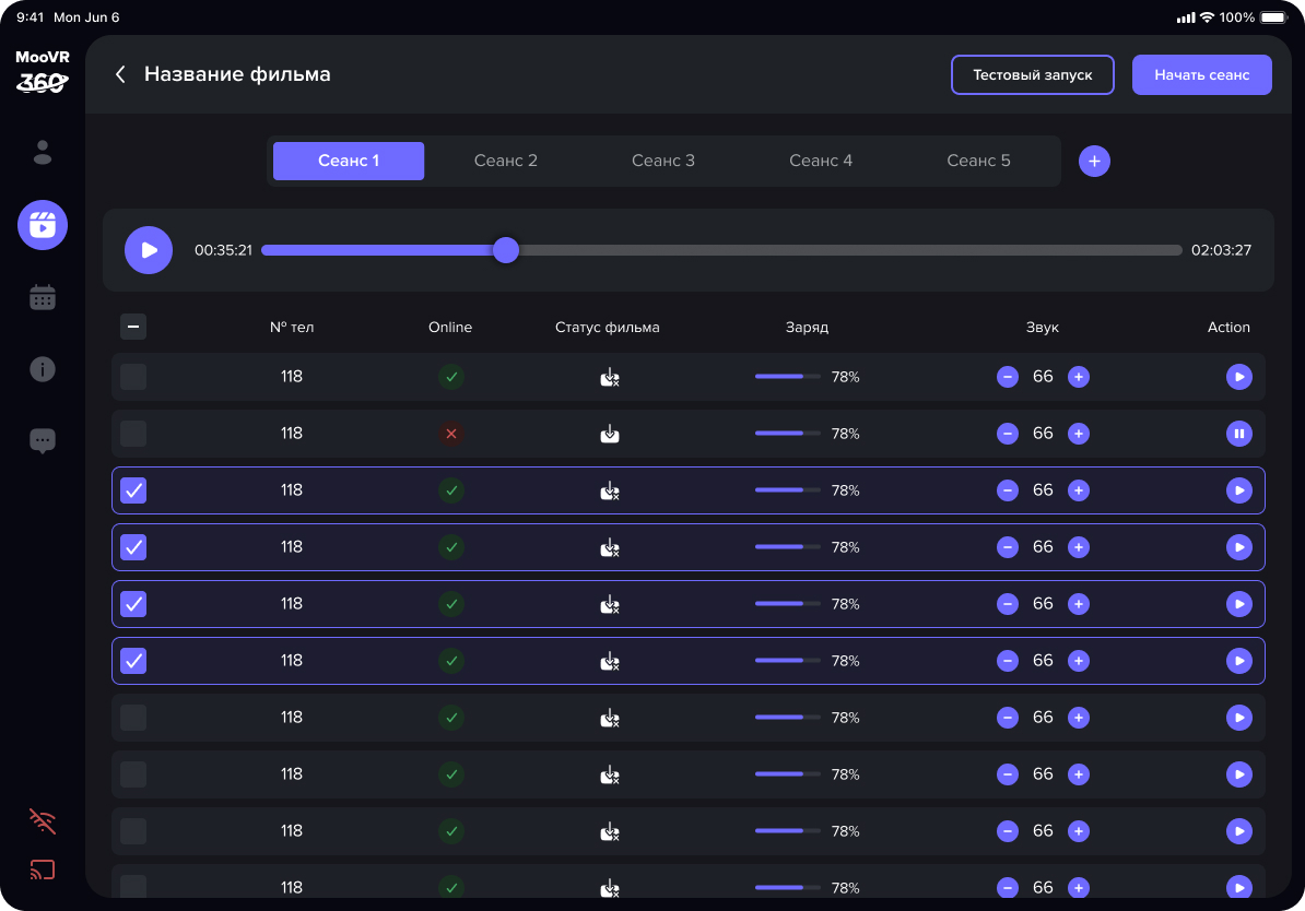 • Планшет оператора: Скачивание фильмов, раздача их на шлемы виртуальной реальности.