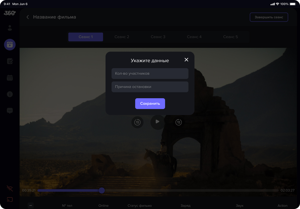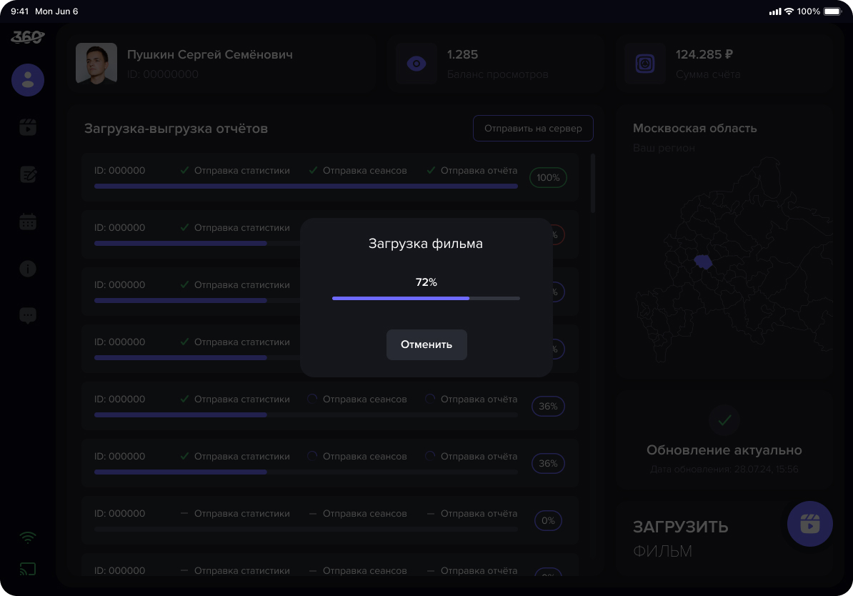 Интеграция с сервисом финтабло: показы фильмов в реальном времени передавались в сервис финтабло для учёта финансовых показателей.